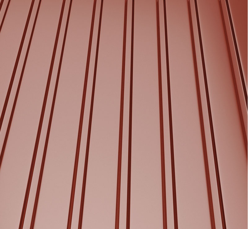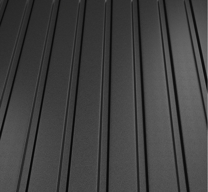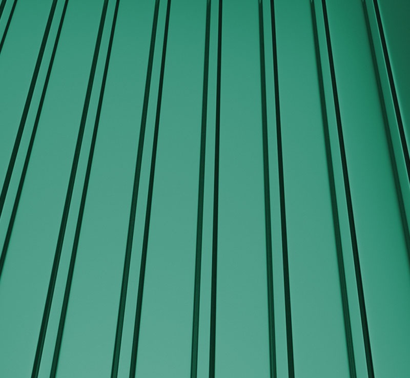 A T8 trapézlemez mindkét oldalán horganyzott és poliészter védőbevonattal ellátott acéllemezből készül.